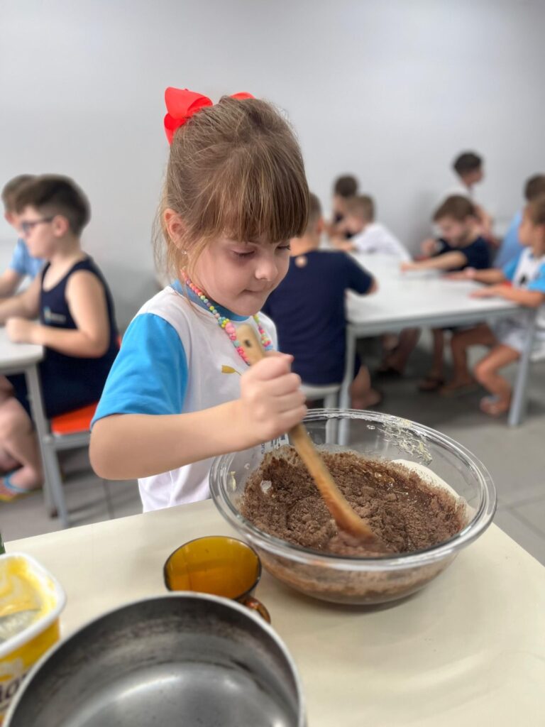 Tivemos momentos divertidos com brincadeiras, colocamos a mão na massa na culinária, curtimos o “Bobbie Goods” e ainda aproveitamos um cinema super especial na escola.
