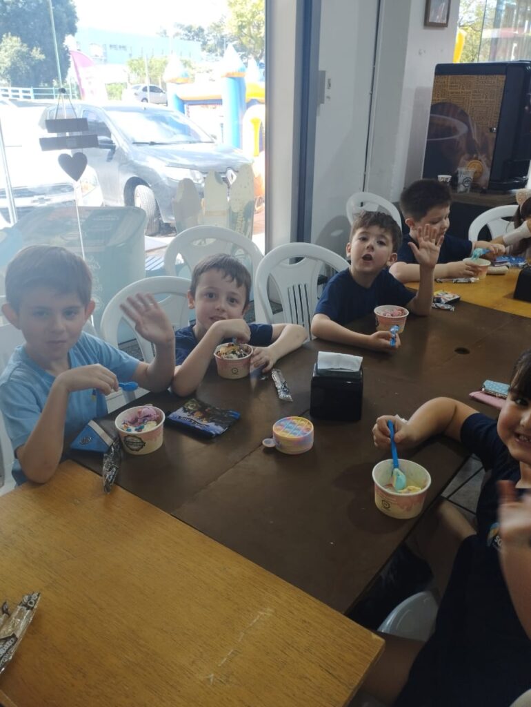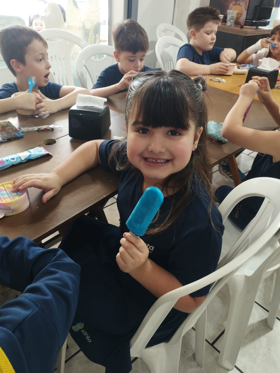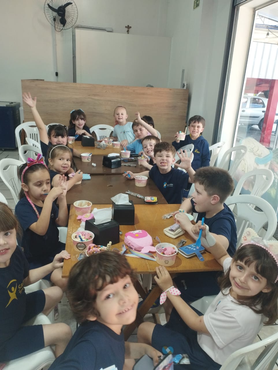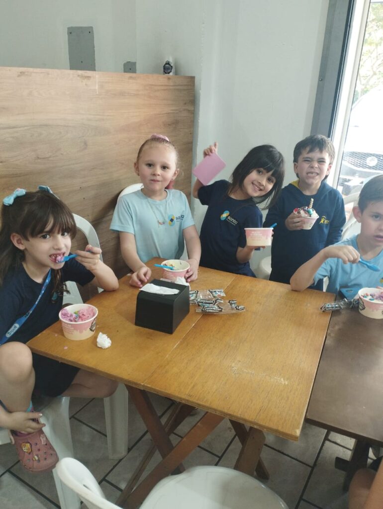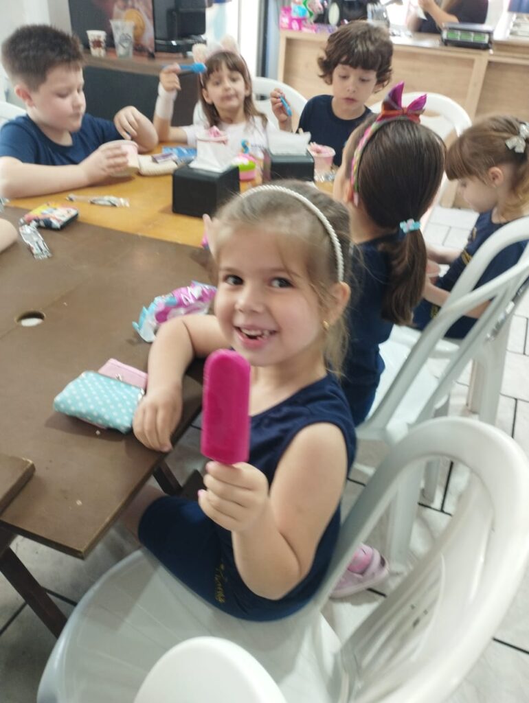 Foi um dia delicioso! As crianças se divertiram escolhendo seus sabores favoritos e aproveitando cada pedacinho desse momento refrescante. Entre risadas e sorvetes coloridos, vivemos um dia doce, divertido e cheio de alegria!