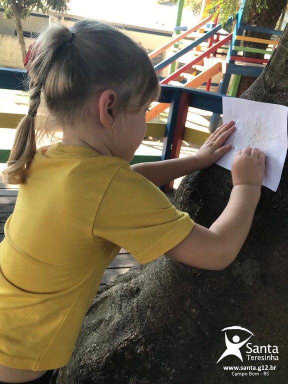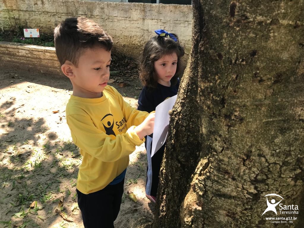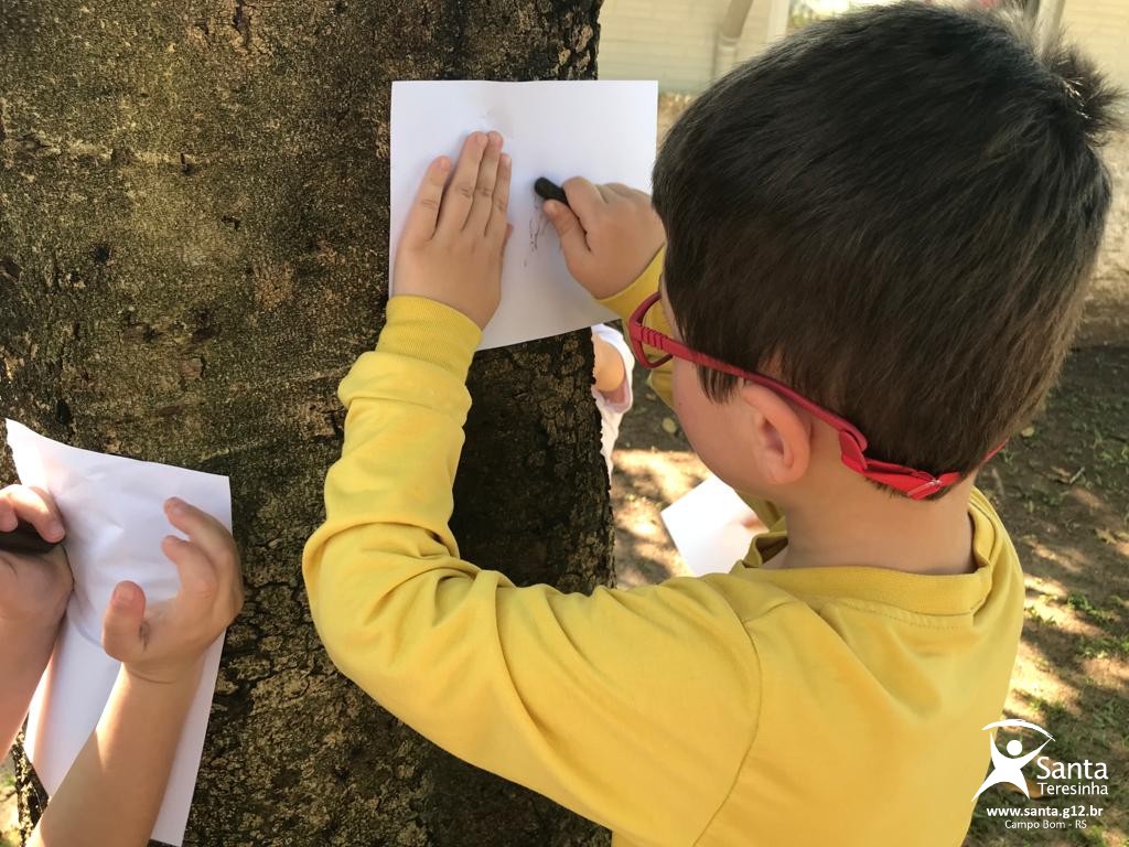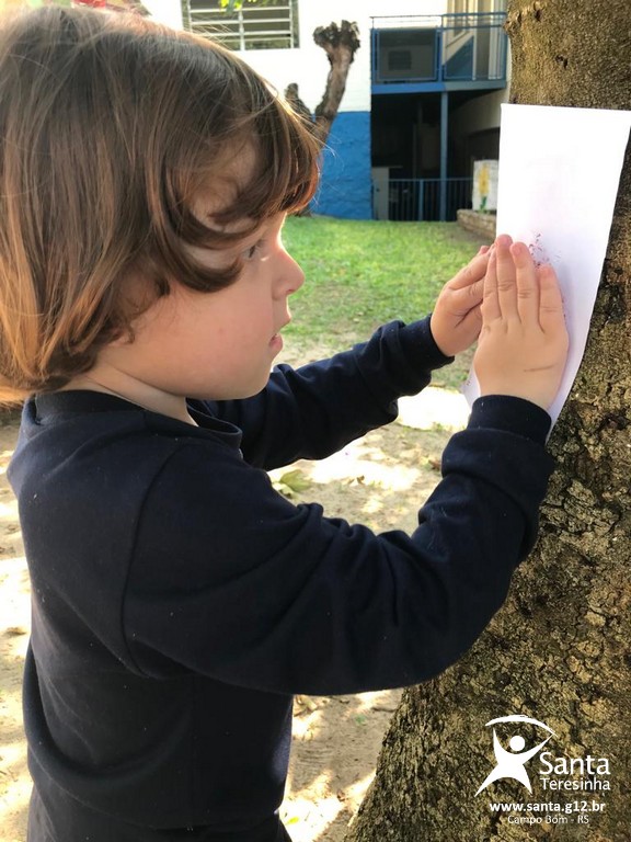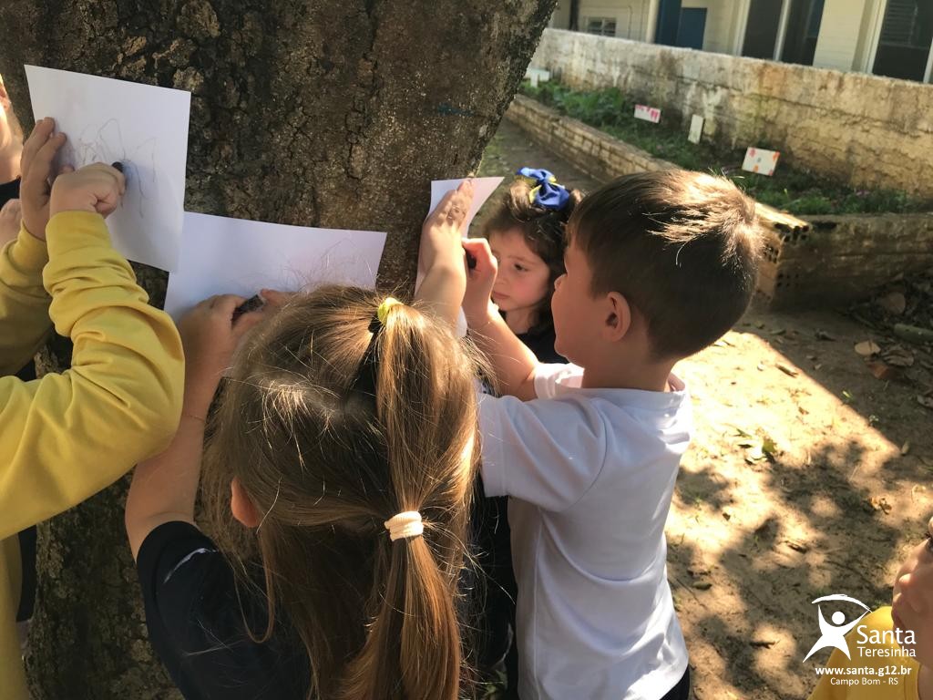 Como é a textura do tronco de uma árvore? As crianças tiveram essa experiência.