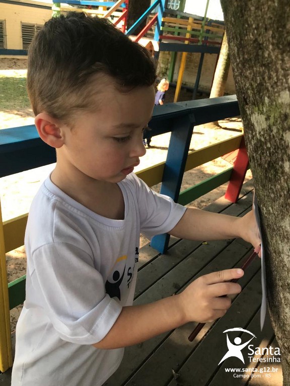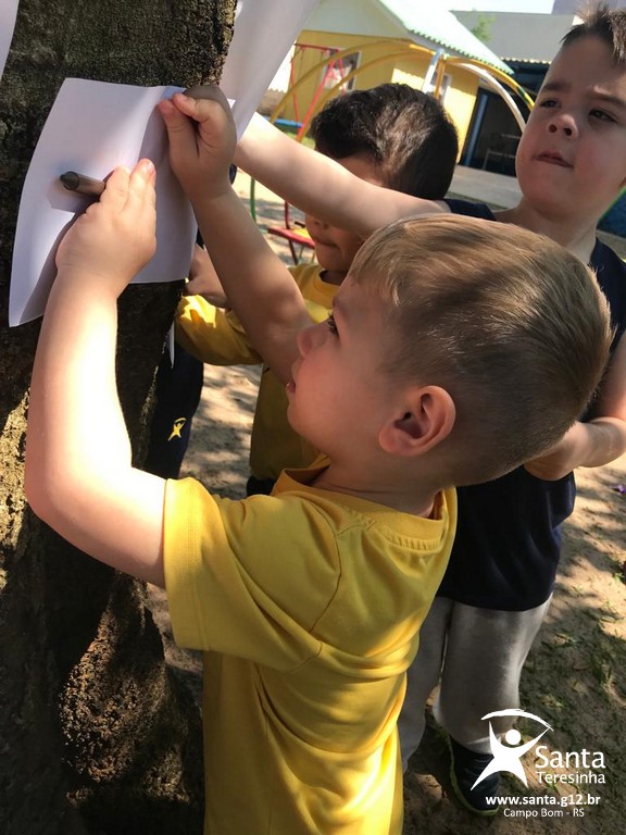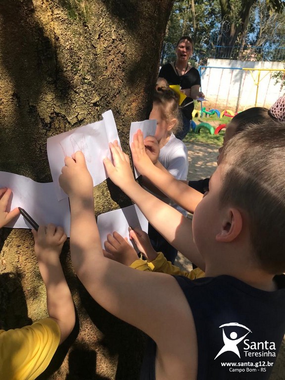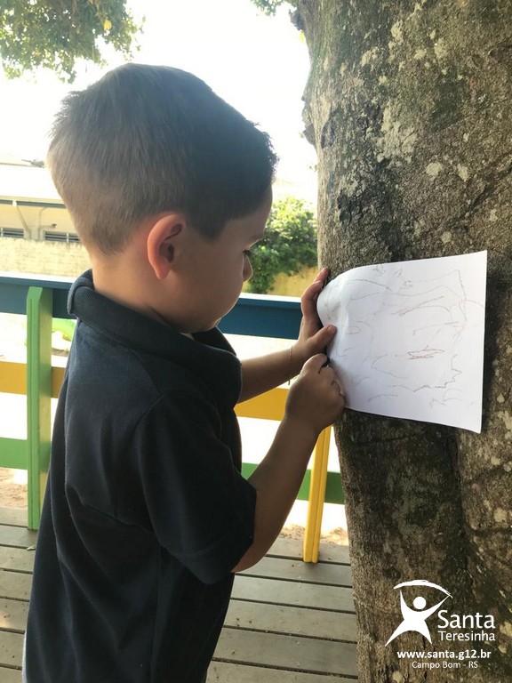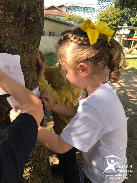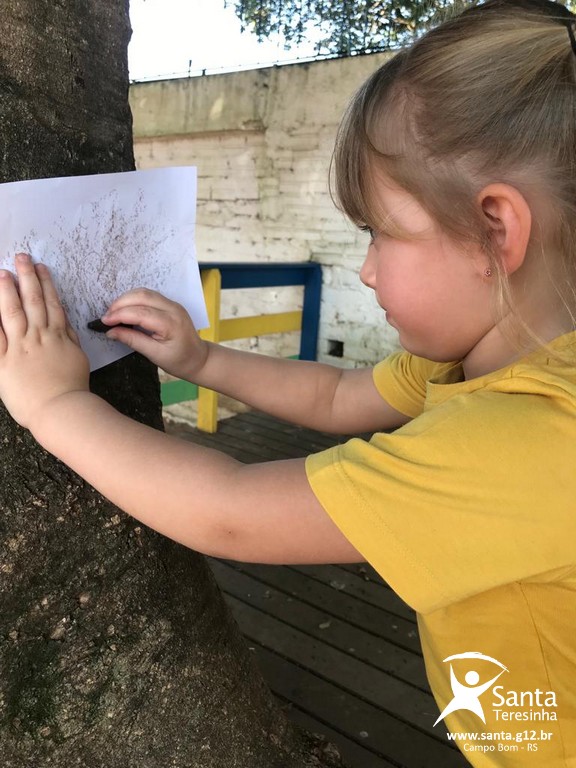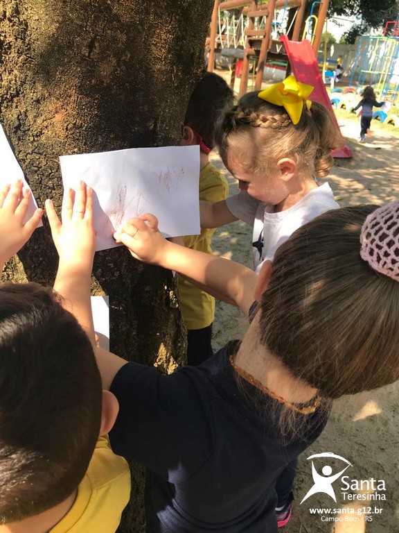 Como é a textura do tronco de uma árvore? As crianças tiveram essa experiência.