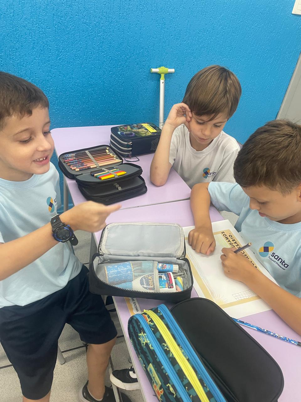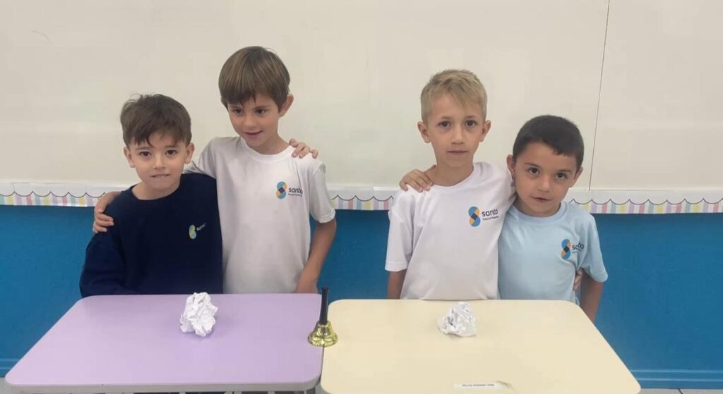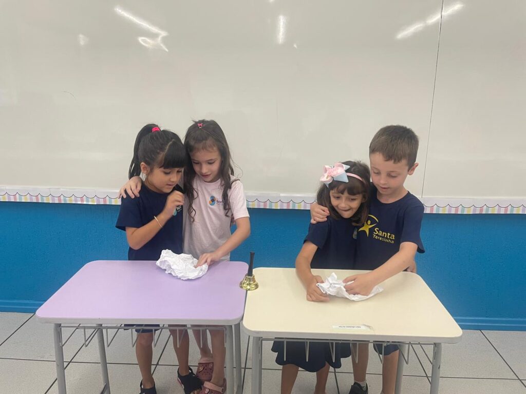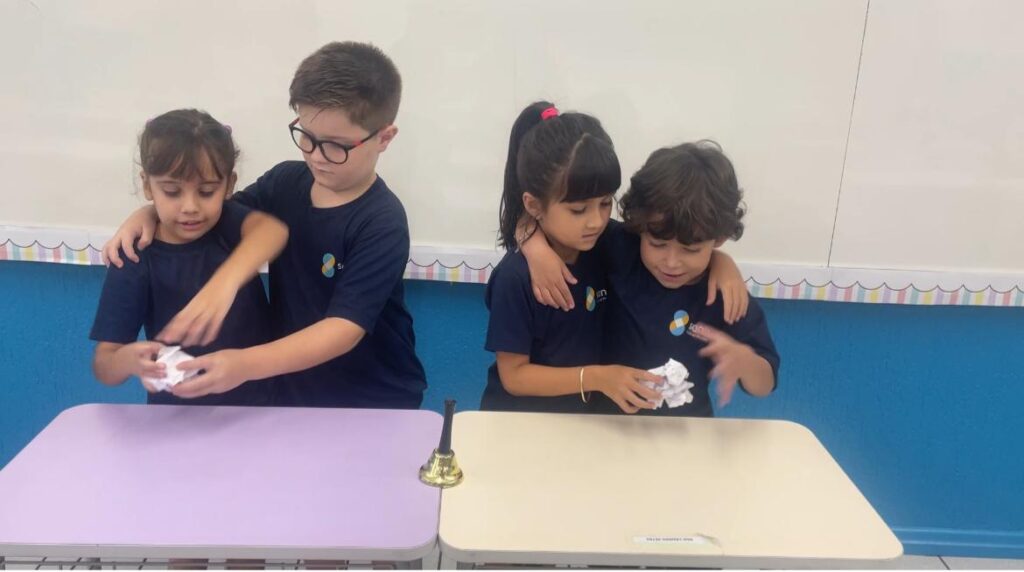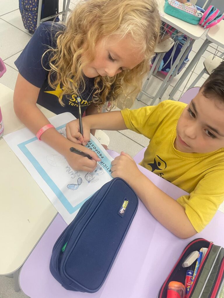 A turma do 1° ano B, realizou a sua primeira atividade em grupo. De forma colaborativa, puderam dialogar, compartilhar ideias e compreender a importância das regras e combinados, para manter o ambiente escolar ainda mais acolhedor.