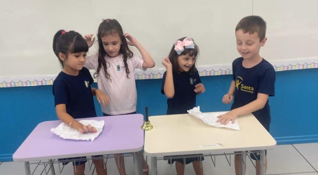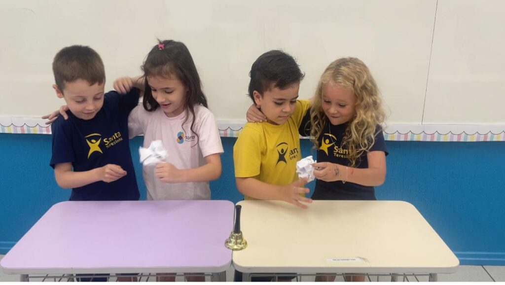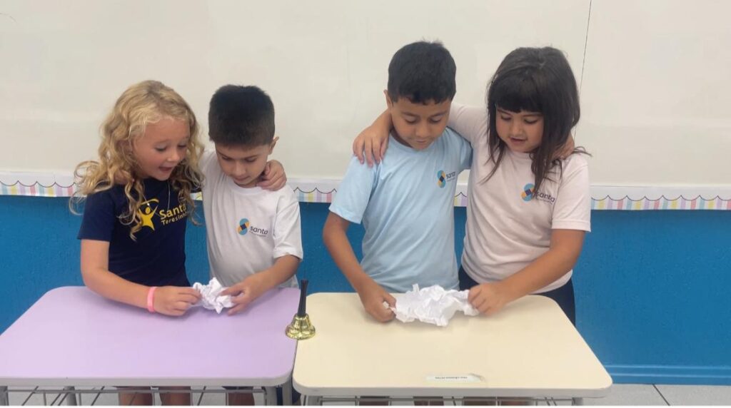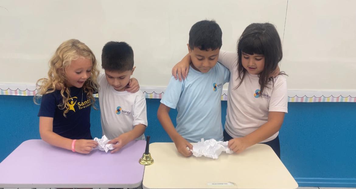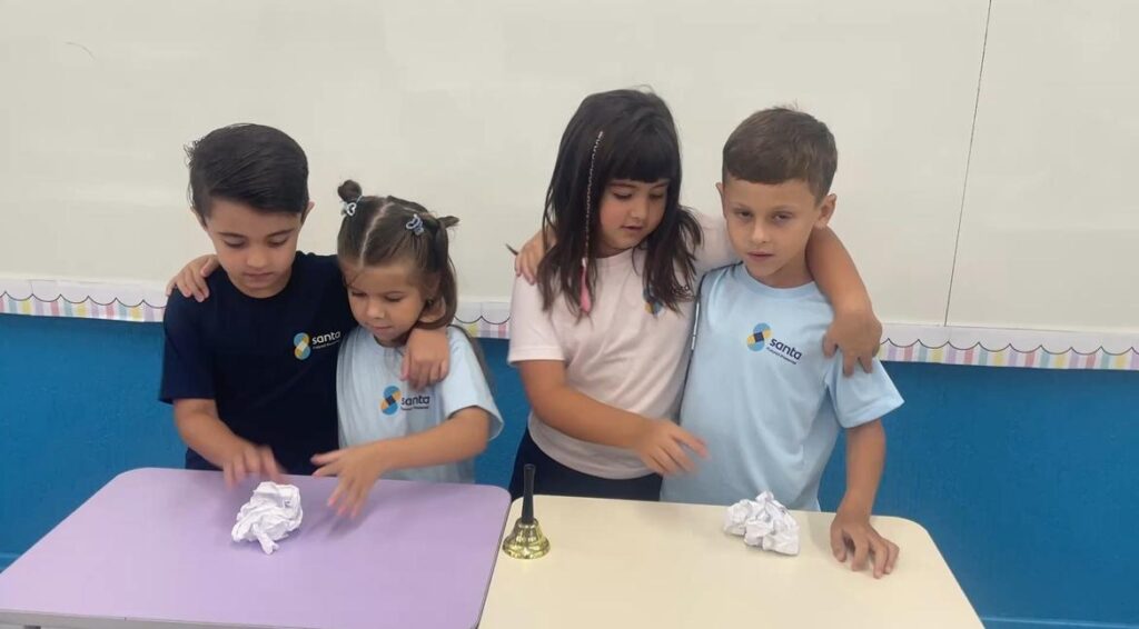 A turma do 1° ano B, realizou a sua primeira atividade em grupo. De forma colaborativa, puderam dialogar, compartilhar ideias e compreender a importância das regras e combinados, para manter o ambiente escolar ainda mais acolhedor.