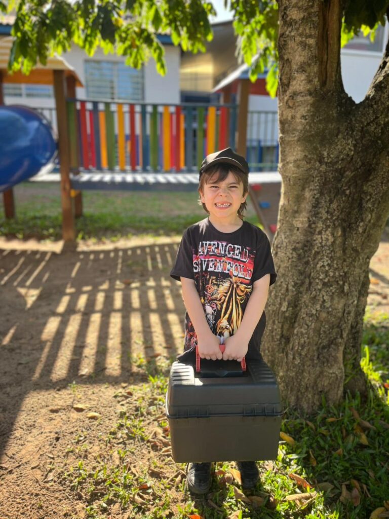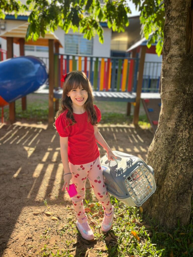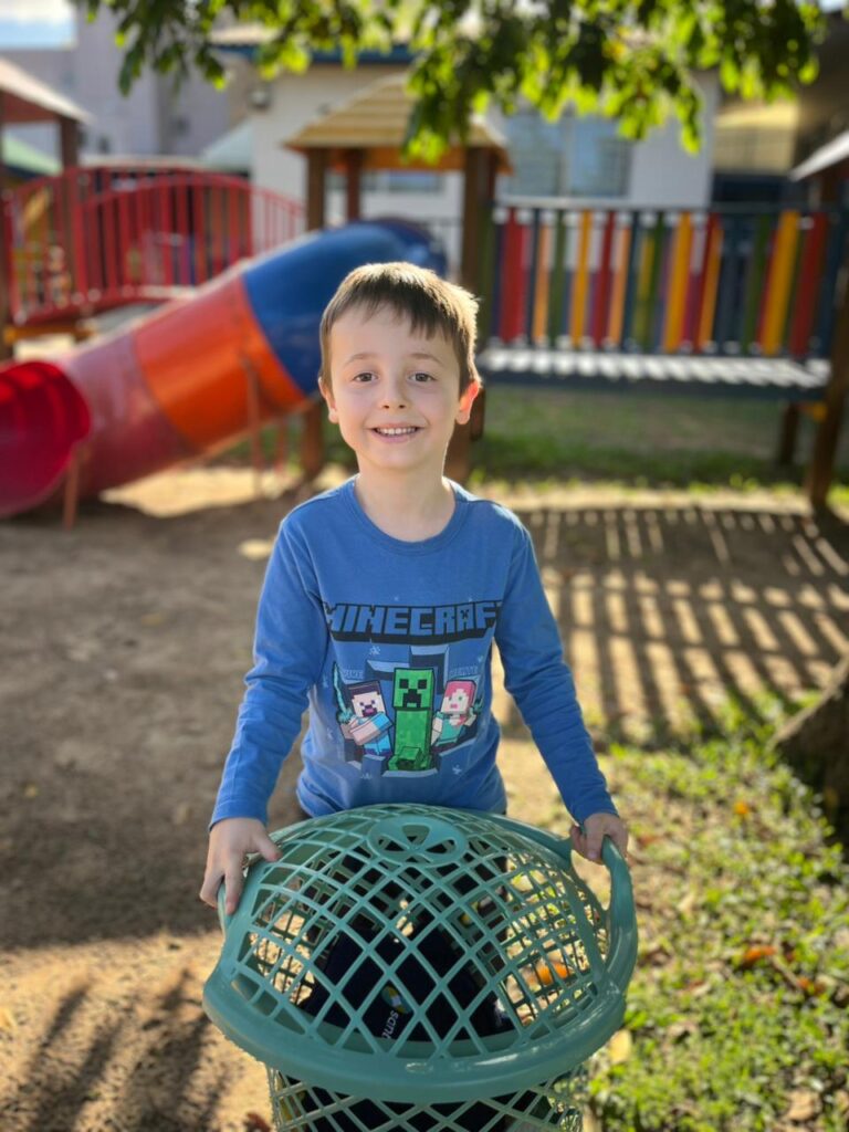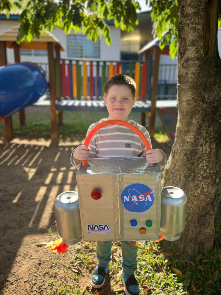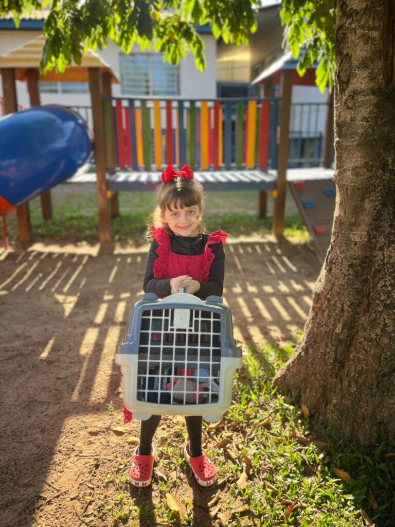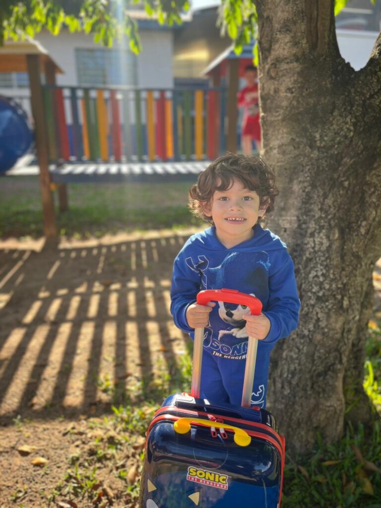 A criatividade tomou conta da escola! As crianças vieram trazendo seus materiais de um jeito super diferente valeu tudo, menos mochila! Cada ideia foi mais divertida que a outra, e o resultado foi um dia cheio de risadas, imaginação e muita alegria!